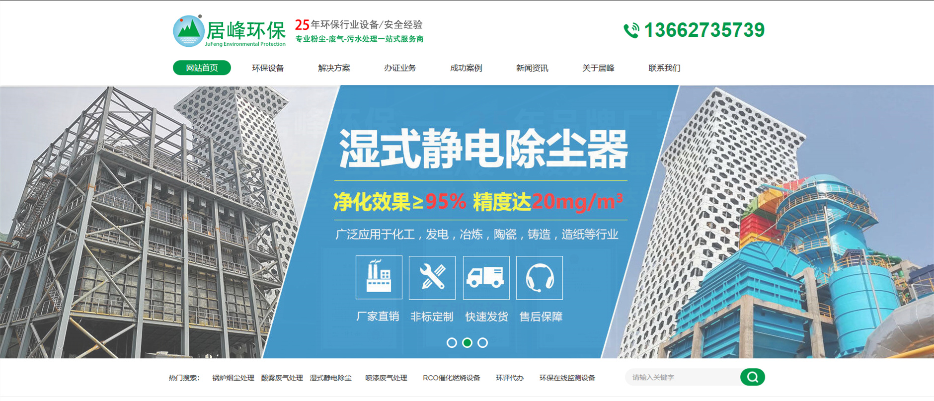 熱門關鍵詞:濕式靜電除塵設備|廢氣處理設備|催化燃燒裝置